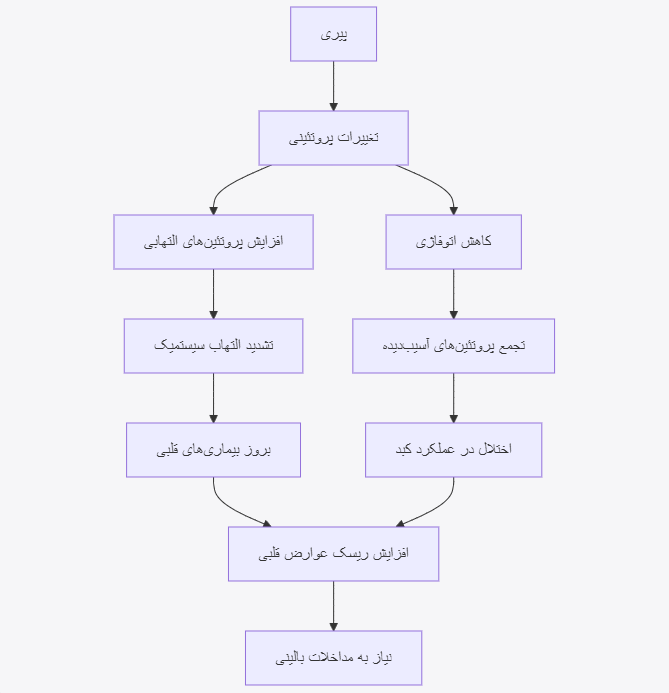 - افزایش سطوح پروتئینهای التهابی: افزایش سطح برخی از سیتوکینهای التهابی، مانند IL-6، در بدن افراد مسن نشانگر افزایش التهاب سیستمیک است که عاملی کلیدی در توسعه پاتولوژیهای قلبی است .